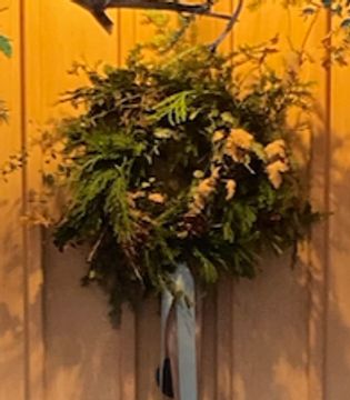 Blue Spruce and English Pine, Fern, Ivy, Cones, Berries, Cinnamon Sticks, Dried festive fruits & Ribbons/Bow